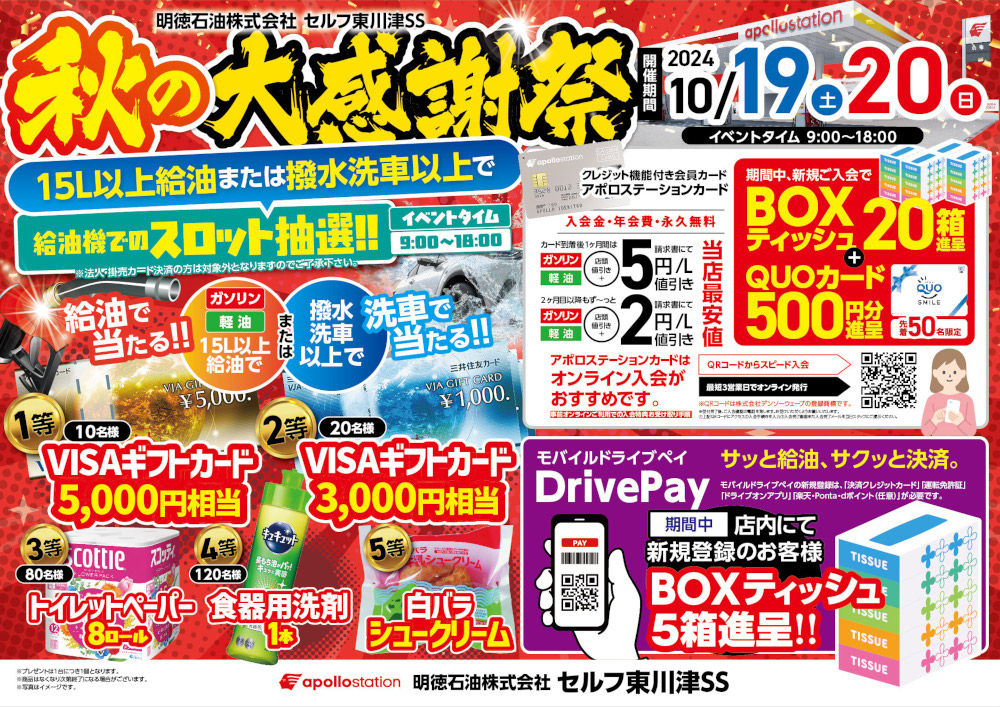 🎈給油がスピーディーになるモバイルドライブペイの新規入会で、BOXティッシュ5箱プレゼント!