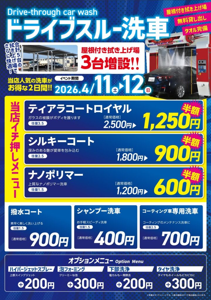 またイベントタイムでセルフ洗車もお得です!